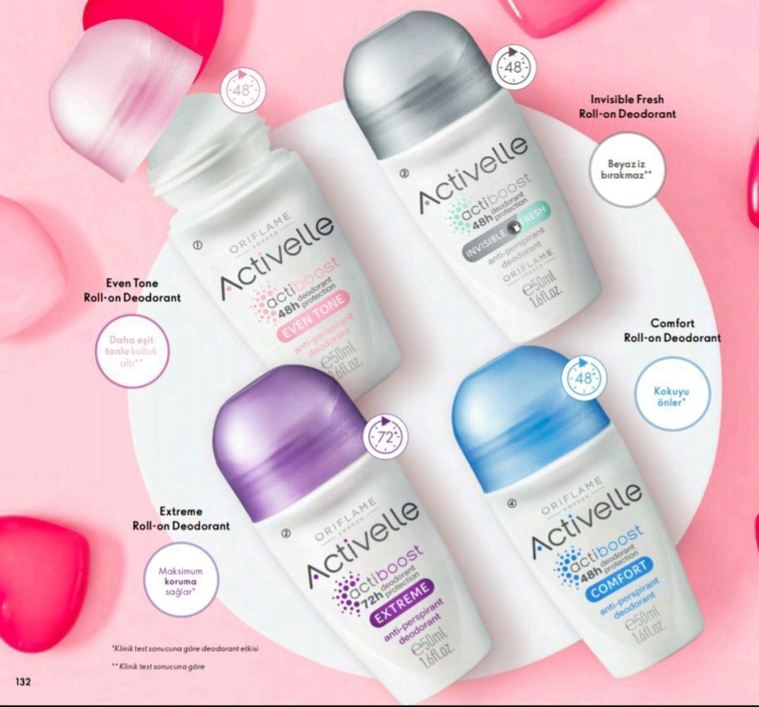 4. محافظت 24 تا 72 ساعته بسته به نوع محصول: مامهای دئودورانت اکتیول اوریفلیم در چهار نوع مختلف با محافظتهای متفاوت ارائه شدهاند. برای مثال: